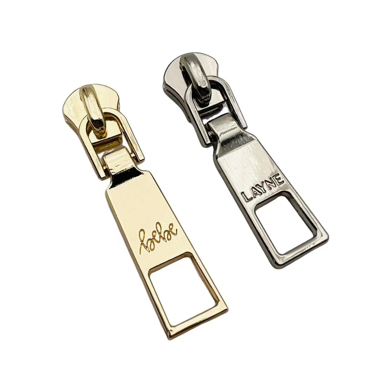 Custom Metal Zipper Pullers & Sliders, Zinc Alloy Engraved Logo Zipper Tabs, Wholesale Decorative Zipper Pulls for Handbags and Clothing