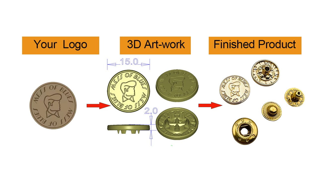 Factory Direct Custom Engraved Logo Press Studs, Bulk Gold Metal Snap Buttons and Four Parts Snap Fasteners, Wholesale Manufacturer