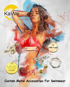 Personalized Bikini Metal Buckles & Connectors for Beachwear, Cut Out Logo Swimsuit Belt Buckle and Metal Tag, Premium Hardware at Bulk Price